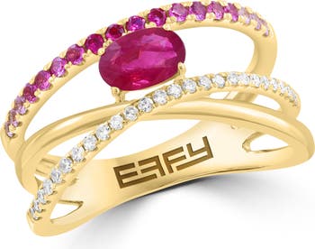 Pink sapphires and sparkly diamonds illuminate this crisscrossing multiband ring crafted from sterling silver with a warm goldtone finish.