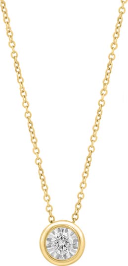 A bright-cut set round diamond brings luxurious sparkle to this dainty pendant necklace crafted from sterling silver with a warm goldtone finish.
