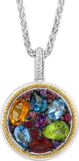 Colorful semiprecious stones in mixed cuts enrich a stunning pendant necklace crafted from polished sterling silver for elegant shine.
