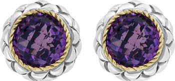 Refresh your jewelry collection with these day-to-night studs centered with faceted amethysts and bordered with twisted 18-karat gold.