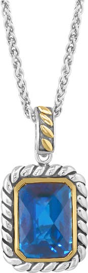 Sterling Silver & 18K Gold Ocean Blue Topaz Pendant Necklace