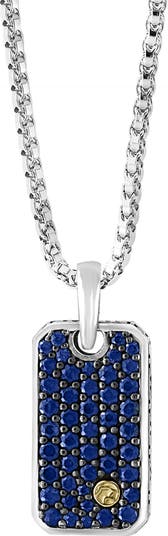 Show off elegant shine with this sterling silver box-chain necklace suspending a pavé sapphire dog-tag pendant accented in 18-karat yellow gold.