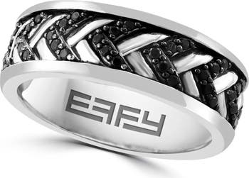 Pavé black spinel in a herringbone design adds edgy sparkle to band ring crafted from polished sterling silver.