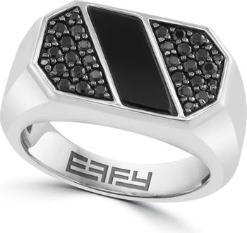 Pavé black spinel and smooth onyx add edgy sparkle to this American-made ring crafted from sterling silver.