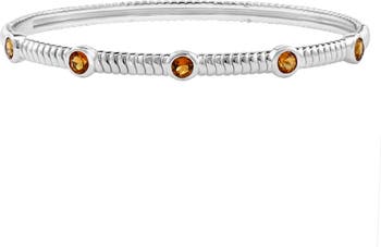 A polished sterling silver bracelet showcases round citrines for sparkling color.