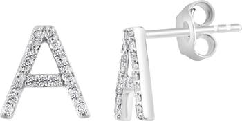 Personalize your look with these sterling-silver initial stud earrings traced by prong-set round diamonds for luxurious sparkle.