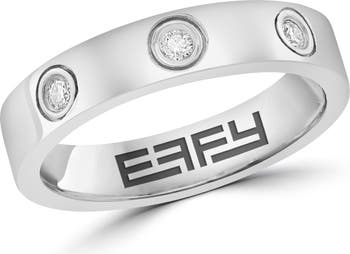 A trio of bezel-set round diamonds bring luxurious sparkle to this classic band ring crafted from polished sterling silver.