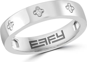 Dainty prong-set round diamonds sparkle from this elegant band ring crafted from polished sterling silver.