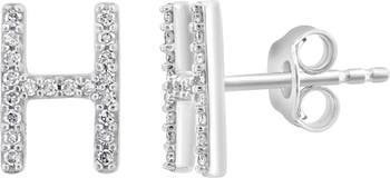 Personalize your look with these sterling-silver initial stud earrings traced by prong-set round diamonds for luxurious sparkle.