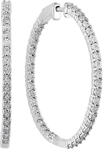 Diamonds dot the edges of gleaming sterling silver hoops to create elegant additions to any look.