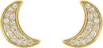 Lustrous pavé diamonds bring celestial sparkle to this moon-shape stud earrings plated in gleaming gold.