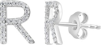 Add a personalized touch to your lobes with these 'R' stud earrings crafted from polished sterling silver and inset with sparkling white diamonds.