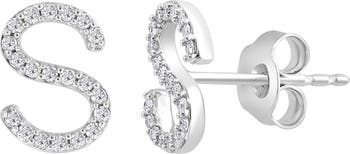 Personalize your look with these sterling-silver initial stud earrings traced by prong-set round diamonds for luxurious sparkle.