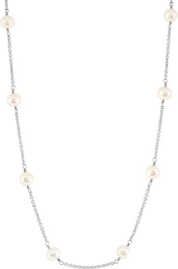Glossy freshwater pearl stations add elegant luster to this slim-chain necklace crafted in the USA from polished sterling silver.