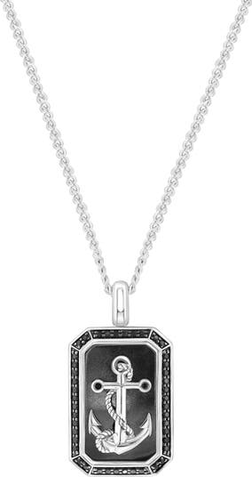 Hematite and black spinel enrich this nautical dog-tag pendant necklace crafted from polished sterling silver.