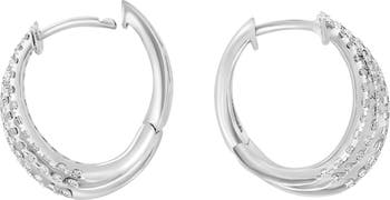 Round lab-grown diamonds bring luxurious sparkle to these elegant huggie-hoop earrings crafted from polished sterling silver.