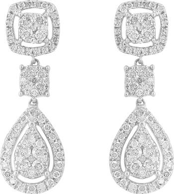 Bring some evening sparkle to your lobes with these double-drop earrings encrusted with pavé white diamonds and crafted from sterling silver.