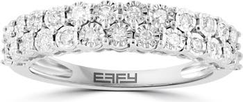 Round-cut diamonds encrust the top of this slender band ring crafted from polished sterling silver.