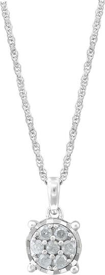 Pavé diamonds bring luxurious sparkle to this dainty round pendant necklace crafted from polished sterling silver.