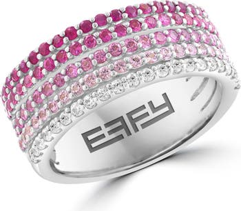 A gorgeous gradient of pink and white semiprecious stones illuminates this multirow ring crafted from polished sterling silver.
