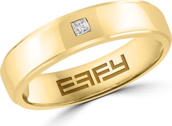 A flush-set princess-cut diamond brings luxurious sparkle to this beveled-edge band ring crafted from sterling silver with a high-shine finish.