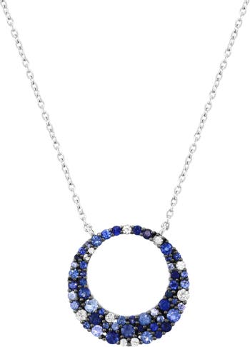 White and blue sapphires bring serene sparkle to an elegant circle pendant necklace crafted from polished sterling silver.