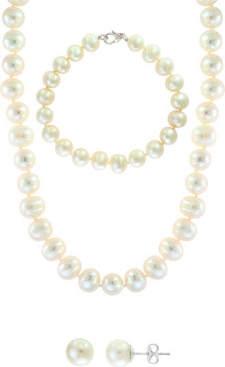 Three-Piece Freshwater Pearl Necklace, Bracelet and Earrings Set