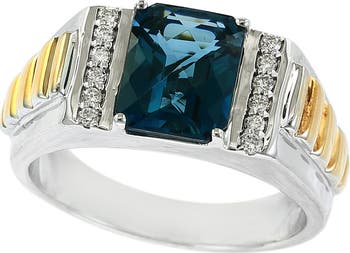 - - Sterling silver band with 18K yellow gold textured shank with 12 round cut diamonds and a London blue topaz ring - Size 10 - Imported Please note: Diamond weight may not be exact. Orders cannot be shipped to Canada, Puerto Rico, APO, FPO or P.O. Boxes.