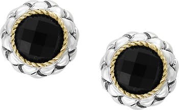 Two Tone Onyx Button Stud Earrings