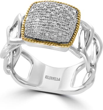 A 14-karat gold-plated halo frames sparkly pavé diamonds on this cushion-shaped ring fashioned with a chain-link band.