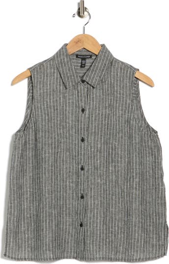 Organic-linen fabrication gives a lightweight fit and feel to a sleeveless shirt offset by a buttoned placket and sharp collar that have you looking posh from work to weekend.