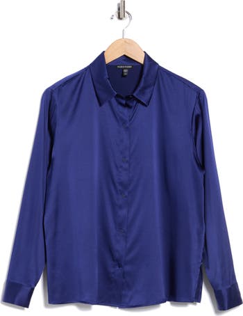 Smooth silk with plenty of stretch makes this button-front shirt an impeccable option for the office and beyond.