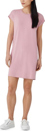 Comfort is key with this roomy T-shirt dress crafted from soft and stretchy fibers.