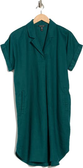 A clean notch collar and short sleeves shape this easy shirt dress made from breathable organic linen for a naturally polished, warm‑weather staple.