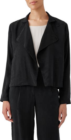 This smooth, soft jacket is designed with polished lapels and a layer-perfect open front.