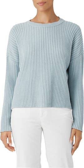 Soft ribbing textures this drop-shoulder sweater knit in a sustainable cashmere-kissed blend.