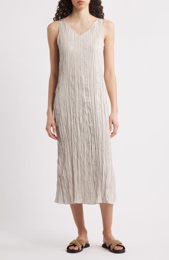 A luxurious pleated silk shapes this flowy midi-length dress cut at a comfortable and chic midi length that makes it perfect for layering.