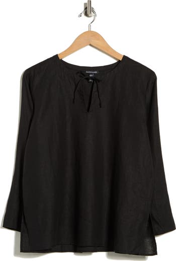 A billowy long-sleeve blouse cut from crisp, breathable organic linen keeps you cool and comfy on even the hottest days of the year.