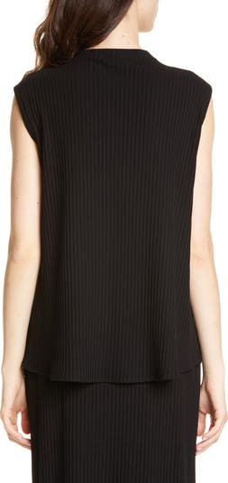 Subtle ribbing adds a hint of texture to a stretchy mock-neck tank that's sure to be a wardrobe staple.