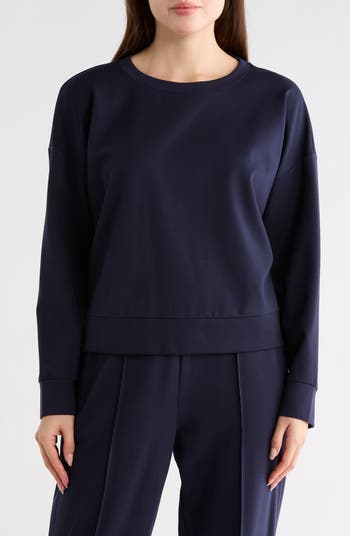 Elevate your work-to-weekend wardrobe with this crewneck top framed with dropped shoulders for a relaxed boxy fit.