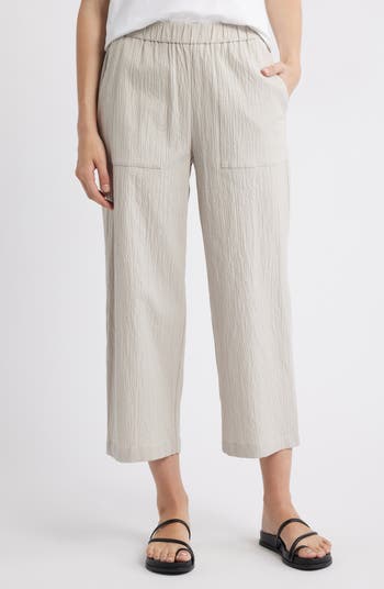 A hint of stretch softens the crinkled organic cotton of cropped pants kept relaxed with an easy elastic waist.