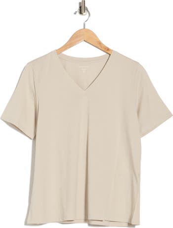A tried and true staple, this organic cotton jersey V-neck features visual texture from a very fine slub yarn.