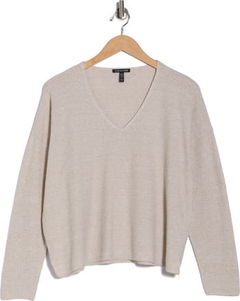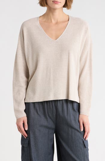 Refresh your wardrobe essentials with this soft V-neck sweater knit from a breathable blend of organic-linen-and-organic-cotton yarns.