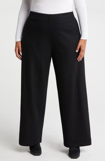 These smart work pants are cut from a soft wool jersey in a flowy, wide-leg silhouette.
