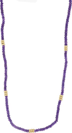Add to your stack this handcrafted necklace enriched with faceted stones and set off by gleaming 14-karat gold beads.