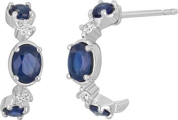 Three brilliant sapphire alternate between the white diamonds on the curves of these handcrafted 18-karat-gold hoop earrings that bring rich color and eye-catching sparkle to your lobes.