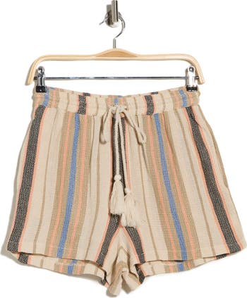 Colorful stripes brighten these breathable pure-cotton cover-up shorts featuring a comfy elastic-drawstring waist.