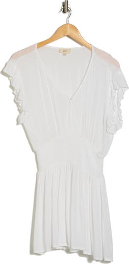 Head from the beach to boardwalk in this airy cover-up minidress framed by ruffled cap sleeves and a smocked waist.