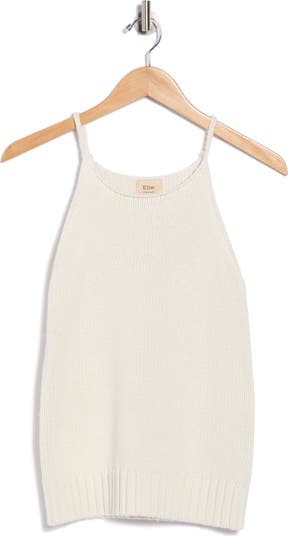 Elevate your wardrobe with this halter-neck sweater-tank knit from soft cotton-silk blend yarns.