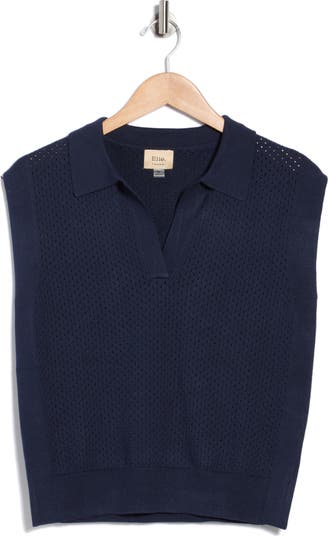 Pointelle Sleeveless Polo Sweater